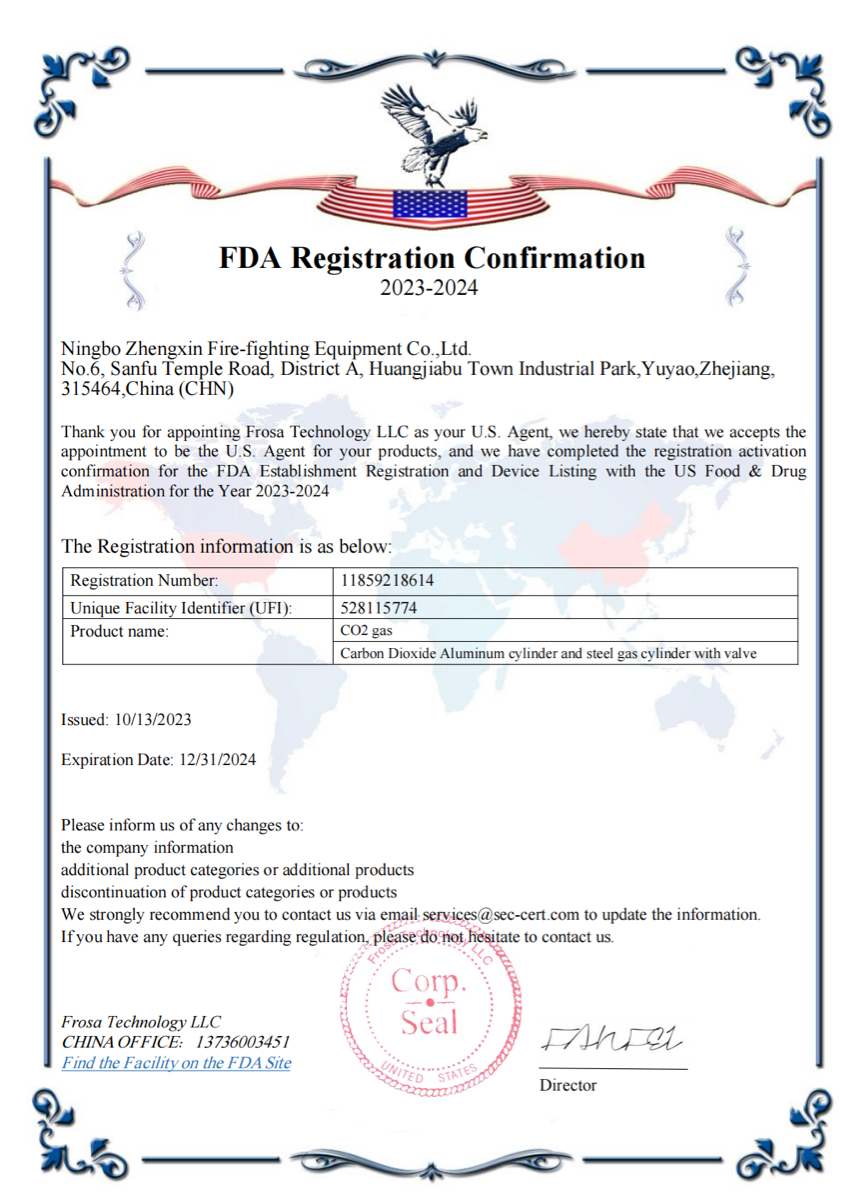 Registration for compliance with U.S. Food and Drug Administration requirements.
