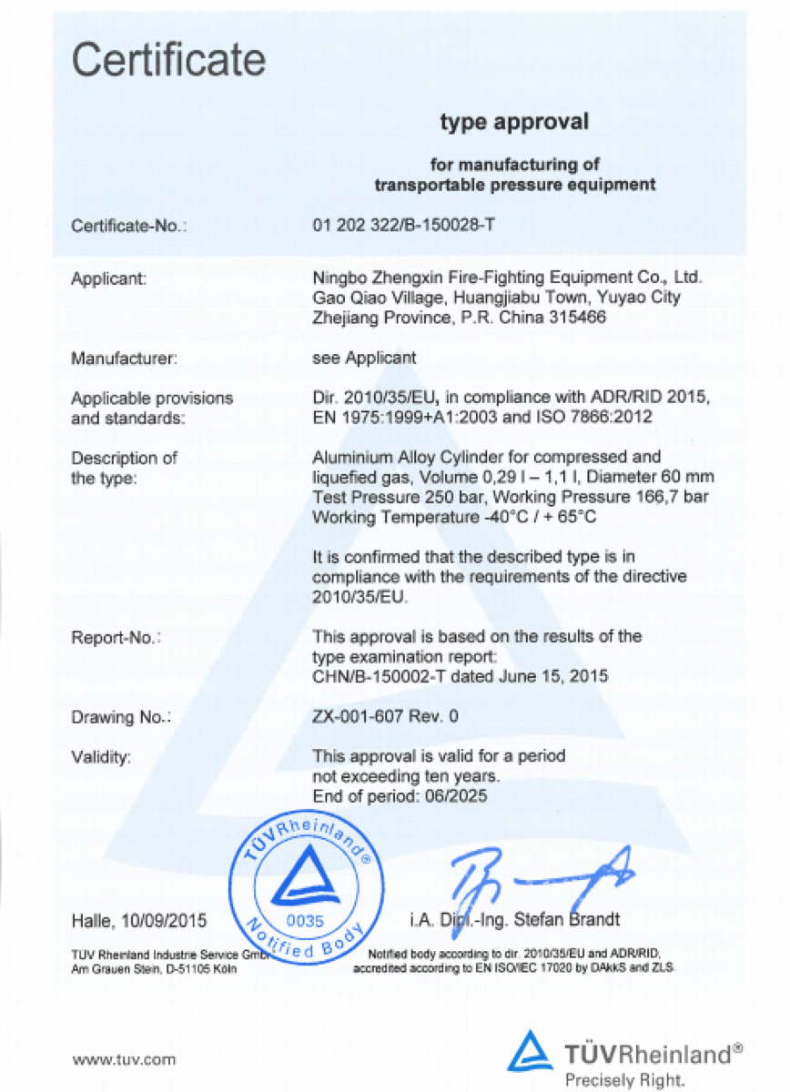 Certification for transportable pressure equipment used in the EU market.